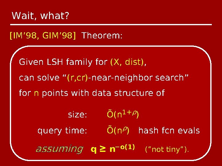 Optimal Lower Bounds For Locality Sensitive Hashing Except