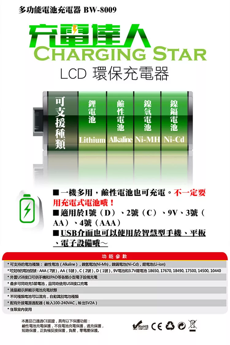 博客來 貝特薇betterwell充電達人lcd專利多功能環保充電器