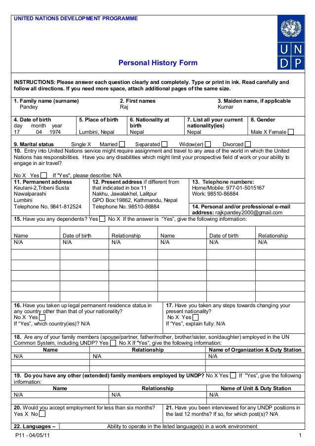 P11 Form Undp Raj K Pandey As Of 14 For Un