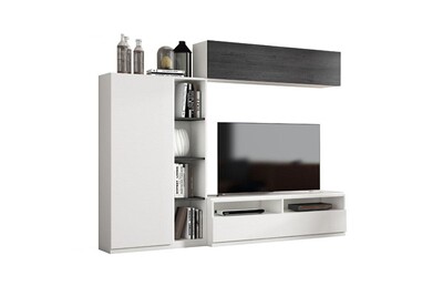 Meubles Tv Tousmesmeubles Composition Tv Bois Blanc Bois Noir Camelia N 3 L 240 X L 45 X H 190 Neuf Darty