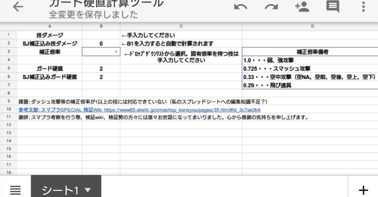ガード硬直計算スプレッドシート あひる Note