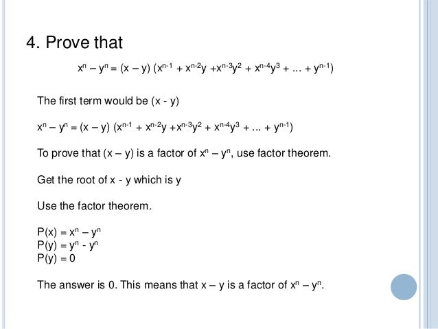 X=y 1/n Shouldn't have to use that though, it makes sense that if a variable to the 8th power is equal to a number, then the variable to the first power is equal to the eighth root of the number 1. An Expansio fonr xn yn By A WATEESON In this note an expansion is found for the expressio yn in n x" terms of x y an od f xy Two illustrativ are e applications appended Theorem If be n a positive integer, x and and y be any two numbers, then x yn = s () rr^_^((n ~n r)(* y)n2r(*y)r where N = — if n is even, and N = if n. In algebra il teorema binomiale (o anche formula di Newton, binomio di Newton e sviluppo binomiale) esprime lo sviluppo della potenzaesima di un binomio qualsiasi con la formula seguente () = = ()in cui il fattore () rappresenta il coefficiente binomiale ed è sostituibile con !!.